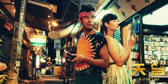 《天台》 6月12日端午节当天,忙于“摩天伦世界巡回演唱会”的周杰伦携“杰出女主角”李心艾与主创之一钟镇涛亮相台北,为自导自演的电影《天台》举行首卖发布会。