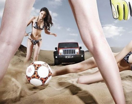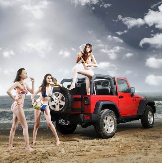 三个比基尼性感车模海边嬉戏,靓丽车模