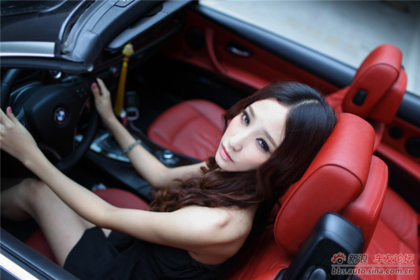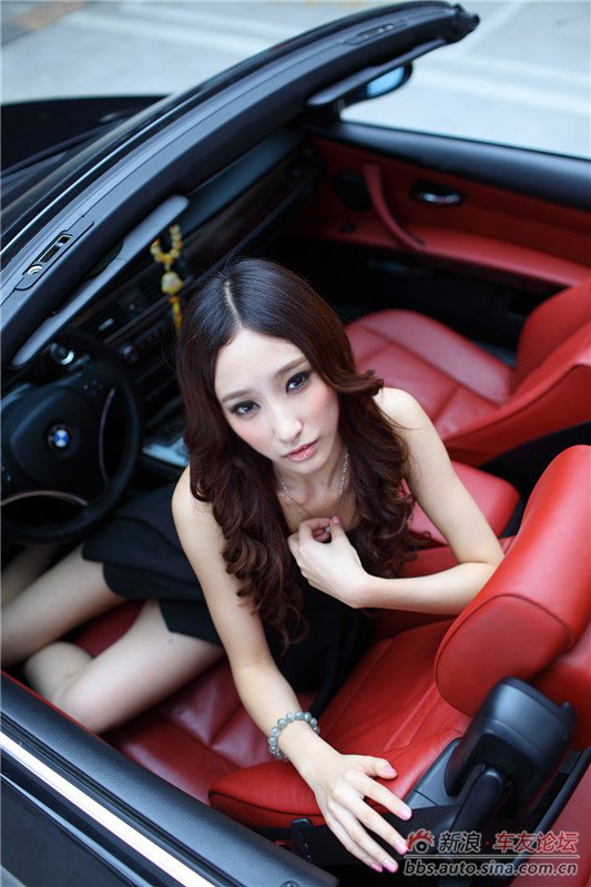 宝马车旁性感女郎的极致诱,靓丽车模