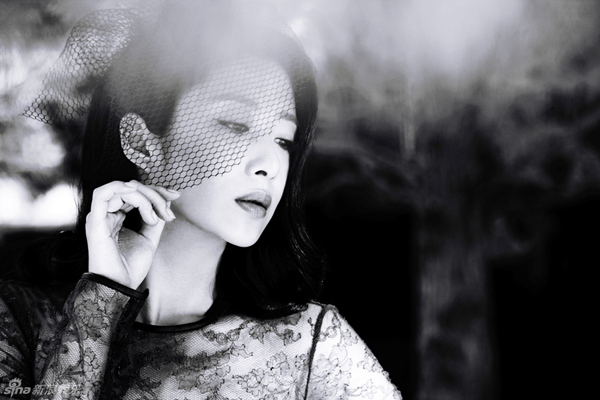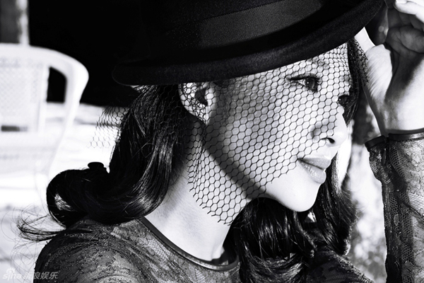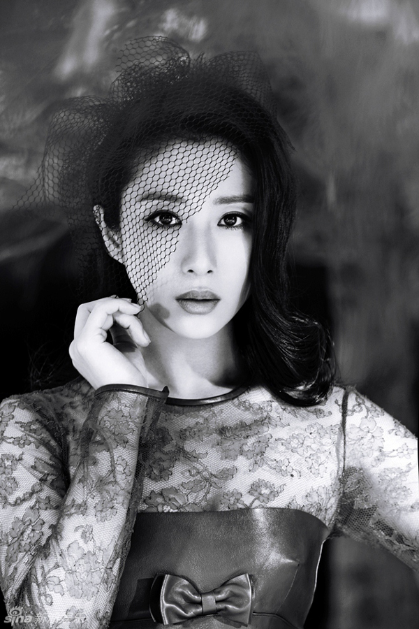刘思彤黑白复古写真 低眉浅笑间名媛气质,美女明星