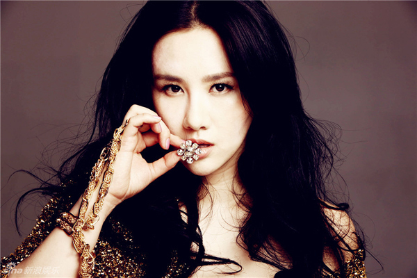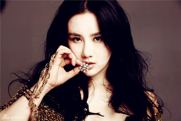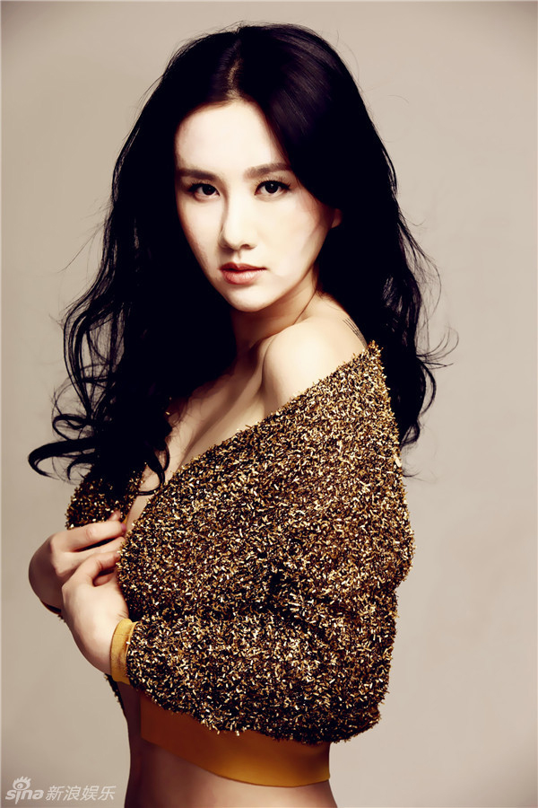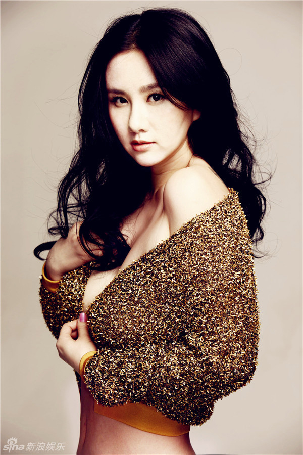 孟瑶金色写真曝光 露香肩展高贵性感,美女明星
