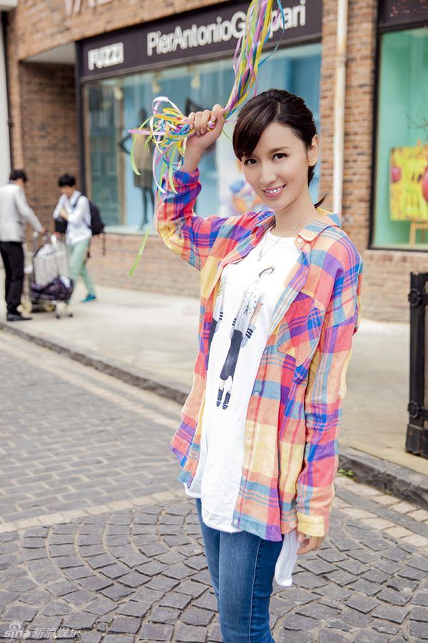 张萌文艺写真曝光 格子衬衣清新笑容,美女明星