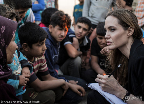 特娱网讯 当地时间2013年6月18日,约旦,好莱坞女星安吉丽娜·朱莉(Angelina Jolie)前往约旦叙利亚难民营探访。