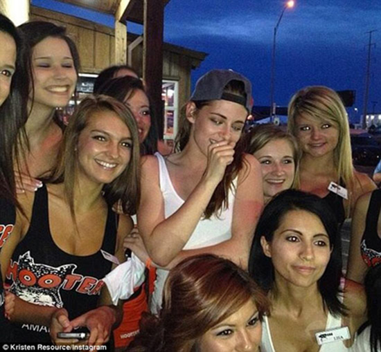 “暮光女”克里斯汀.斯图尔特于16日在德克萨斯州的某餐厅用餐并与服务员亲密合照,看上去十分开心。