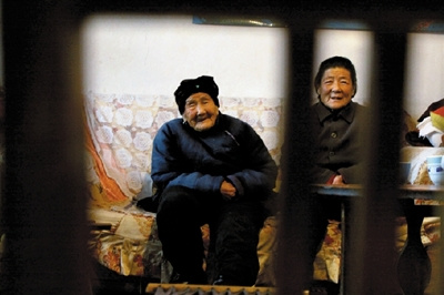 老奶奶(左)和一直陪在她身边的三女儿(右)在一起。