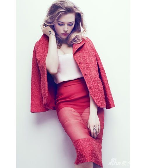 斯嘉丽约翰逊碎花裙登杂志 丰唇性感柔美,时尚大片