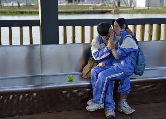 福建一公园展出雷人雕塑:中学生舌吻