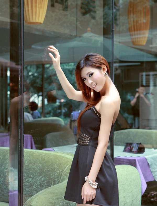 美女小芸黑色洋装性感街拍图片,性感美女